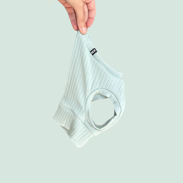 Der Schnitt entspricht dem der Crop Tops. Der Kragen ist kürzer ausgeführt, da der lange Hals noch nicht final ausgebildet ist. Der Beinbereich ist so gestaltet, dass ausreichend Bewegungsfreiheit vorhanden ist.