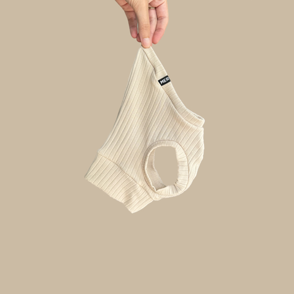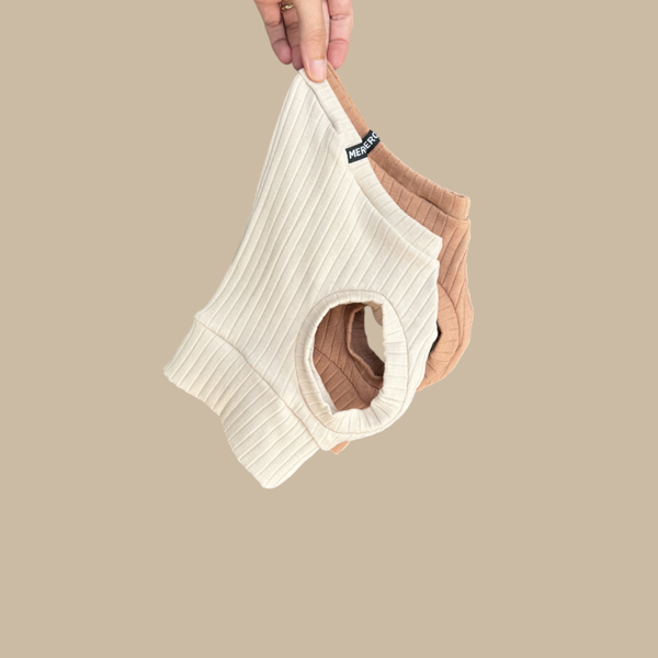Der Schnitt entspricht dem der Crop Tops. Der Kragen ist kürzer ausgeführt, da der lange Hals noch nicht final ausgebildet ist. Der Beinbereich ist so gestaltet, dass ausreichend Bewegungsfreiheit vorhanden ist.