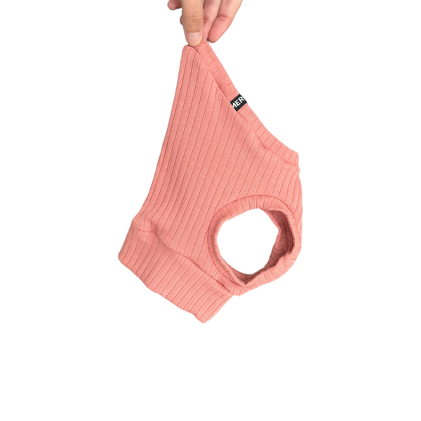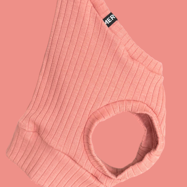 Der Schnitt entspricht dem der Crop Tops. Der Kragen ist kürzer ausgeführt, da der lange Hals noch nicht final ausgebildet ist. Der Beinbereich ist so gestaltet, dass ausreichend Bewegungsfreiheit vorhanden ist.