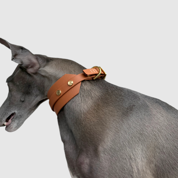 Was brauchen lange, dünne Windspielhälse? Breite Halsbänder, die sie schmücken.