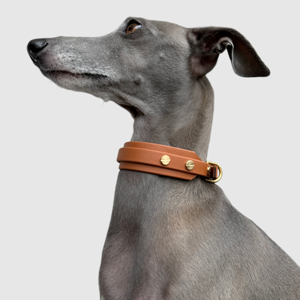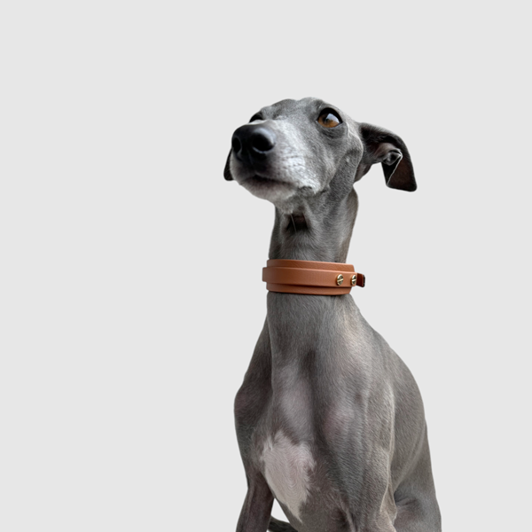 Was brauchen lange, dünne Windspielhälse? Breite Halsbänder, die sie schmücken.