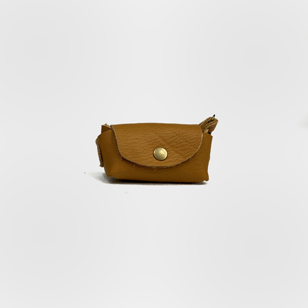 Die Kotbeuteltasche besteht aus feinstem Echtleder geschmückt mit Nieten und Knöpfen aus antikem, rostfreiem Messing. Mit dem Karabiner lässt er sich leicht und sicher an der Leine, Handtasche oder einer Gürtelschlaufe anbringen.