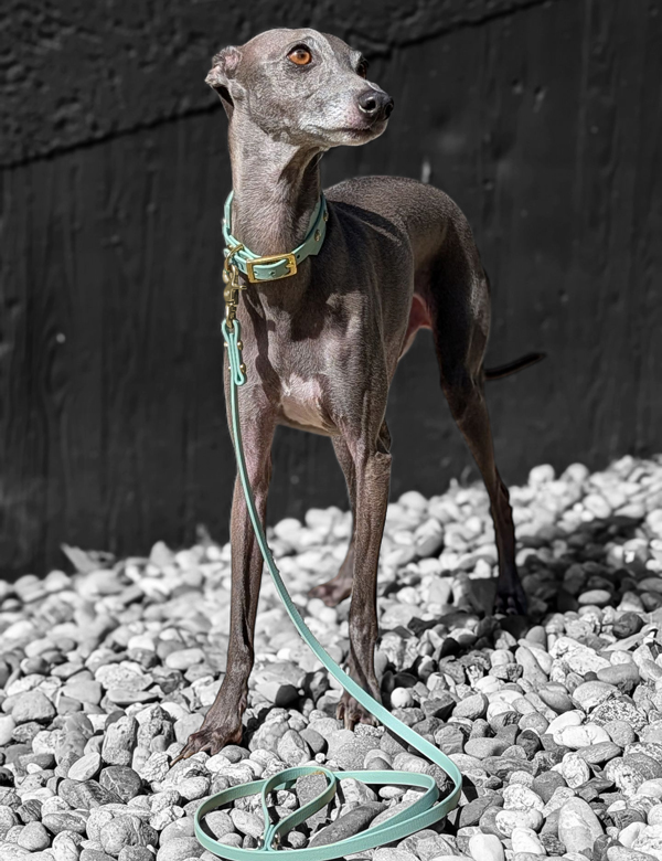 Unsere Leine „fine“ haben wir extra für den kleinen und zierlichen Windspielkörper ausgelegt. Ziel war es, eine möglichst leichte Leine mit kleinem Karabiner zu entwickeln.