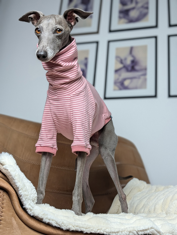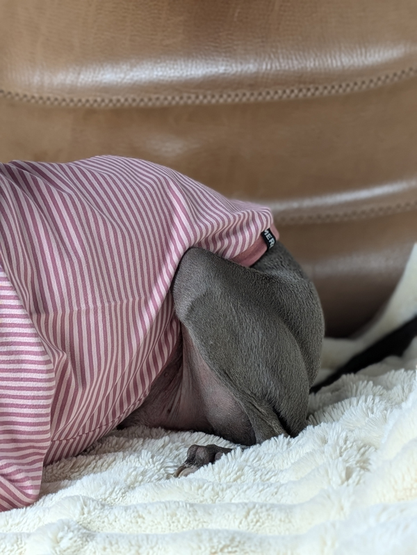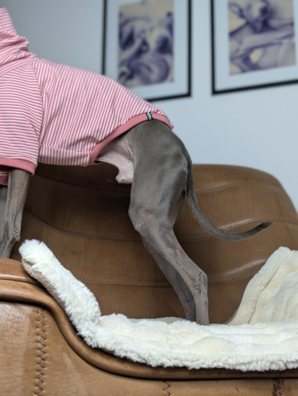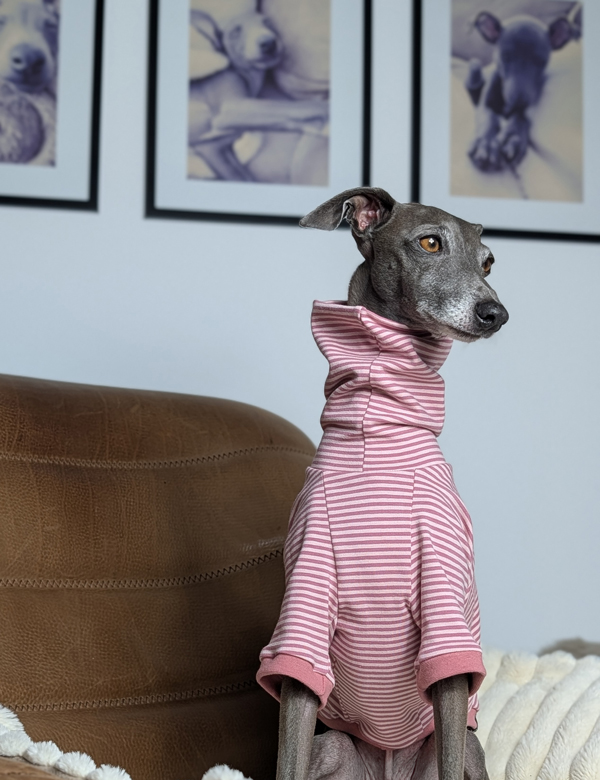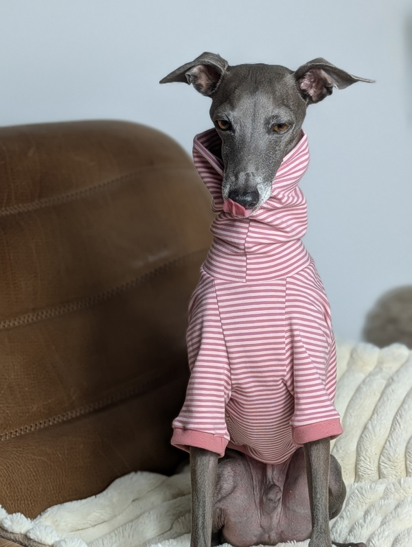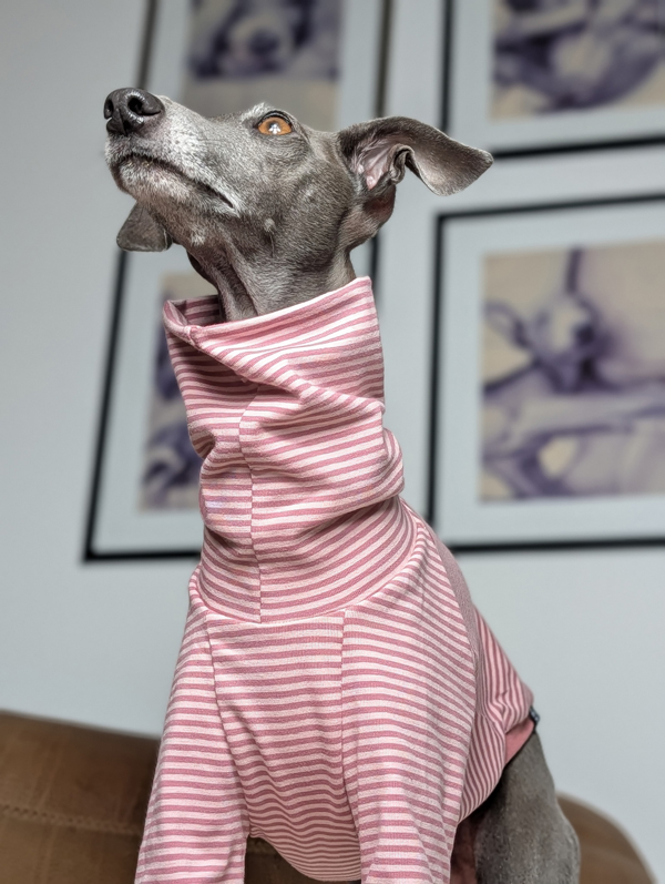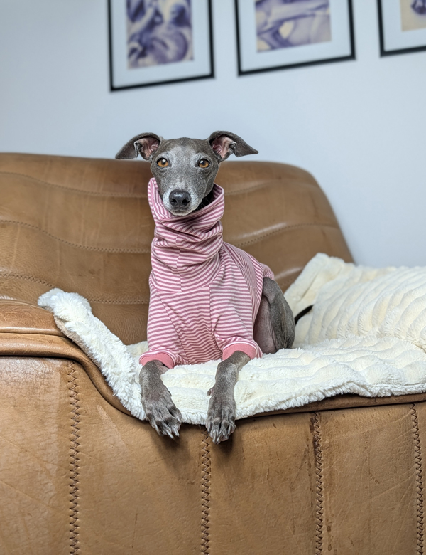 Durch den großzügigen Schnitt entfällt das Einfädeln der schlanken Windspielbeinchen, während zugleich genug Bewegungsfreiheit für ihr Lieblingshobby – das Rennen – gewährleistet ist.