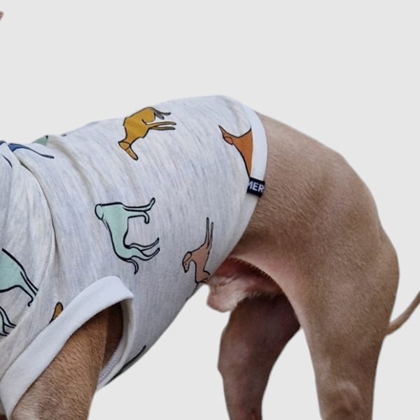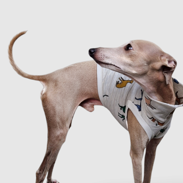 Durch den hohen Baumwollanteil schmiegt es sich wie eine zweite Haut an Euren Hund. Die weit ausgeschnittenen Beine sorgen für ausreichend Bewegungsfreiheit und reiben nicht an empfindlichen Stellen.